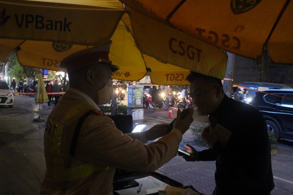 Đêm 17/12, tổ Cảnh sát Y1/141 (Phòng CSGT, Công an TP Hà Nội) do Trung tá Nguyễn Ngọc Thuyên (Phó Đội trưởng Đội CSGT số 1, Phòng CSGT CATP Hà Nội) làm tổ trưởng lập chốt xử lý vi phạm tại nút giao Bà Triệu - Nguyễn Du. Một làn đường Bà Triệu được lực lượng chức năng ngăn lại để kiểm soát nồng độ cồn của người điều khiển phương tiện.
