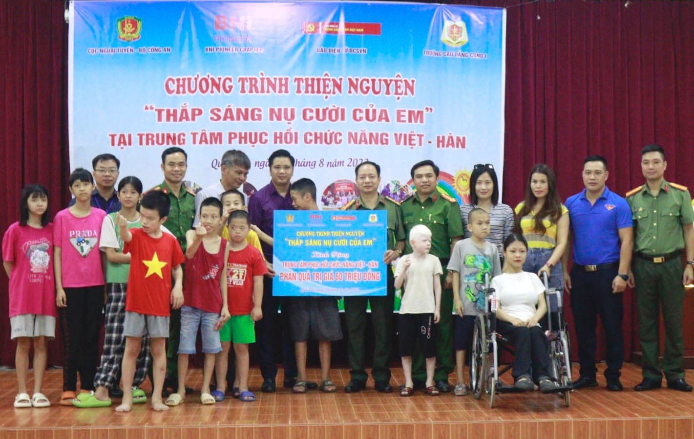 Với mong muốn được mang tới cho trẻ em khuyết tật những niềm vui, món quà ý nghĩa trong dịp Tết Trung thu 2023, Ngày 29/8 vừa qua Đoàn Thanh niên Báo Điện tử Đảng Cộng sản Việt Nam, Đoàn Thanh niên Cục Ngoại tuyến, Đoàn Thanh niên Trường Cao đẳng Cảnh sát nhân dân I (Bộ Công an) phối hợp cùng BNI Chapter Pioneer tổ chức Chương trình “Thắp sáng nụ cười cho em” với các hoạt động tặng quà và tổ chức trò chơi cho các em thiếu nhi tại Trung tâm Phục hồi chức năng Việt – Hàn.