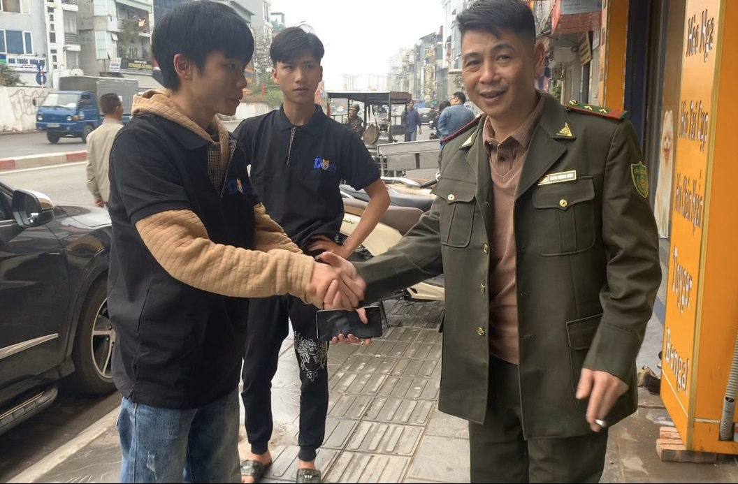Anh Hoàng Xuân Nam (bên trái) bàn giao thành công cá thể mèo cho đại diện Hạt Kiểm lâm số 3 - Chi cục Kiểm lâm Hà Nội.