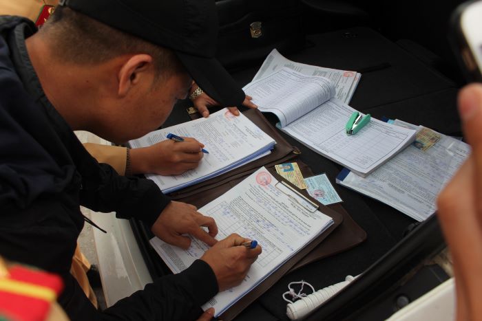Tổ công tác đã tiến hành lập biên bản xử phạt lỗi dừng xe nơi có biển "cấm dừng xe và đỗ xe".