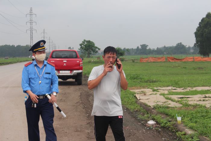 Quá trình làm việc với tổ công tác, tài xế này không xuất trình được bằng lái, giấy tờ xe,… và liên tục gọi điện cho chủ xe đến giải quyết.