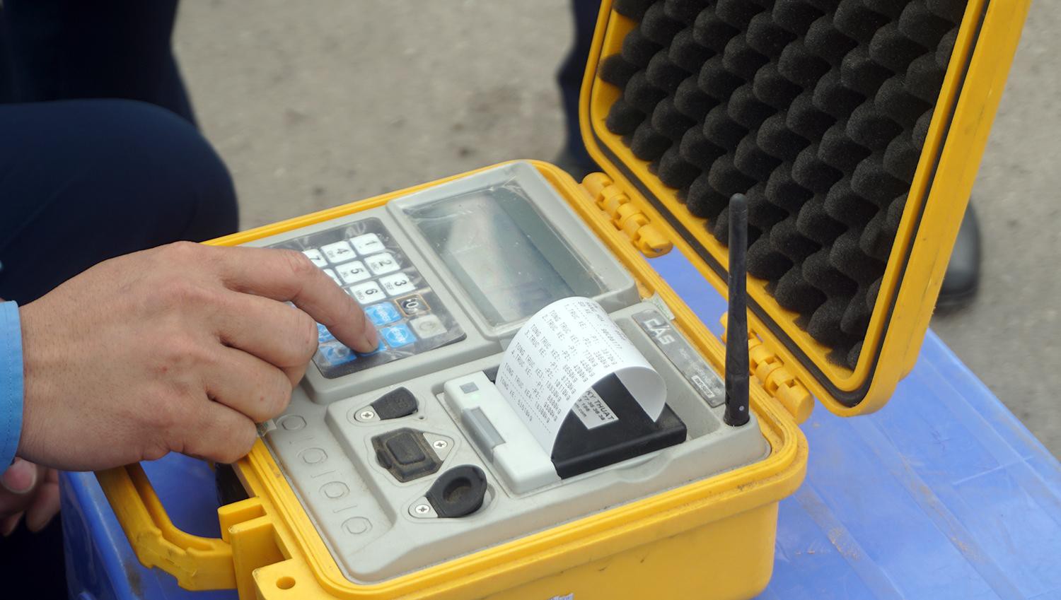 Không lâu sau đó, tổ công tác tiếp tục dừng chiếc xe tải BKS 20C-049.75 và yêu cầu nam tài xế đưa xe vào cân tải trọng.