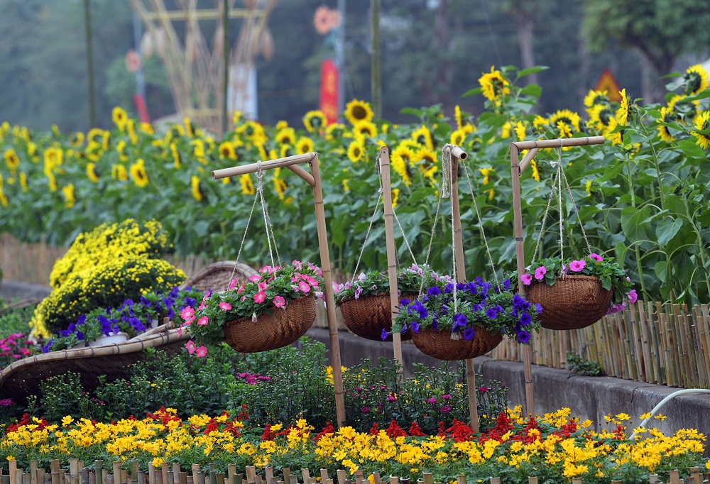 Khung cảnh rực rỡ sắc màu tại đường hoa Home Hanoi Xuan 2021 (Khu đô thị Splendora - Hoài Đức, Hà Nội).