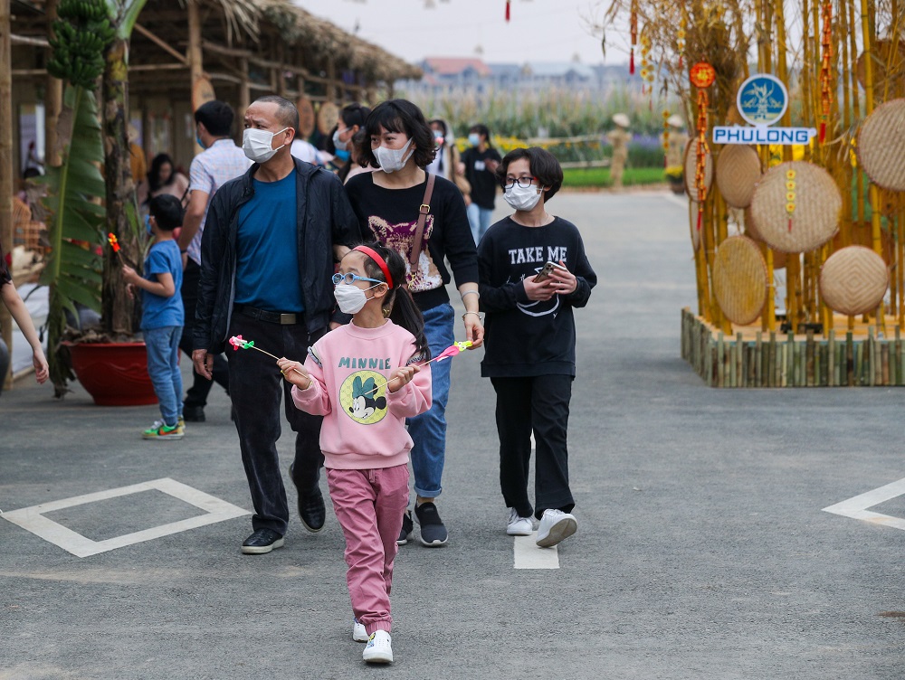Trong ngày đầu mở cửa (7/2), nhiều người dân Hà Nội đến tham quan, trải nghiệm không khí mùa xuân ấm áp, sum vầy tại đường hoa Home Hanoi Xuân 2021. Không gian trữ tình, đặc trưng các miền quê hương tươi đẹp, hoa đồng, cỏ nội đặc sắc đưa mọi người về với không gian bình yên ấm no ngày xuân, tận hưởng không khí Tết xưa của một Hà nội hào hoa mà thanh lịch.