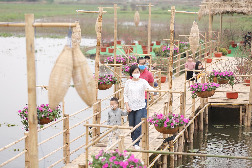 Du xuân sớm tại Home Hanoi Xuan, nhiều du khách ấn tượng trước Phố Xuân với muôn hoa đồng nội trải dài tựa những dòng sông đầy sắc màu đang uốn lượn, thấp thoáng những mái nhà tranh, ụ rơm vàng óng thơm mùi đồng quê, bụi chuối, bãi mía lau, vạt hoa cải, giàn bầu bí, ruộng ngô, vườn cây ăn trái trĩu quả,… Khu Bến Xuân tái hiện dòng sông quê hương với cầu tre mộc mạc, guồng quay nước, những thuyền hoa xuôi ngược… tạo không gian bình yên ấm no ngày xuân. Cánh Đồng Xuân nổi bật phía cuối con đường với mía lau, ruộng ngô, lúa, luống rau xanh mát... để những người con xa quê được trải nghiệm một cách chân thật nhất những miền ký ức quê nhà… Xen giữa không gian hoa cỏ là xích đu, xe đạp, cầu khỉ, giếng làng, guồng nước, bù nhìn… để du khách lưu lại những khoảnh khắc đẹp của mùa xuân nơi đây.