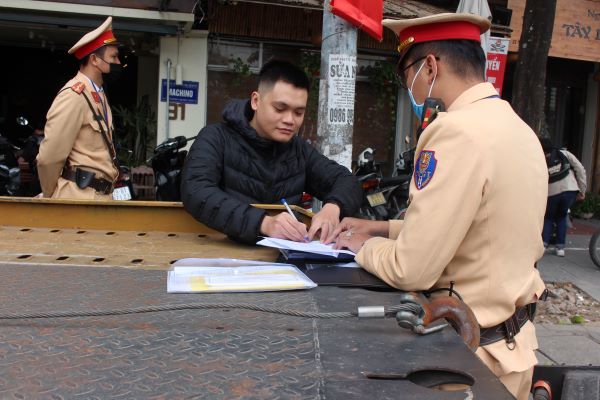 Đại úy Đỗ Quang Anh (cán bộ đội Cảnh sát giao thông đường sắt - Tổ trưởng tổ tuần tra kiểm soát) cho biết : Thực hiện kế hoạch số 170 của Phòng Cảnh sát giao thông Công an TP Hà Nội về đảm bảo an ninh an toàn giao thông, tăng cường xử lý các xe ôtô vi phạm lỗi dừng đỗ sai quy định của pháp luật. Trong quá trình thực hiện nhiệm vụ các tổ tuần tra kiểm soát của đội Cảnh sát giao thông đường sắt khi được phân công thực hiện tuần tra trên 1 tuyến nào đó phát hiện xe ôtô vi phạm dừng đỗ sai quy định nếu chủ phương tiện vi phạm có mặt tại vị trí vi phạm thì chiến sĩ CSGT kiểm tra giấy tờ và lập biên bản xử lý tại chỗ, hẹn chủ xe lên trụ sở đơn vị CSGT để giải quyết.
