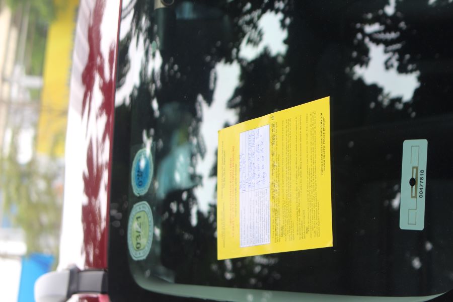 Một xe vi phạm bị xử phạt dừng đỗ sai quy định trên đường Nguyễn Chí Thanh ( quận Ba Đình) lái xe chưa xuất trình giấy tờ nên sẽ dán Thông báo xử phạt lên kính xe.