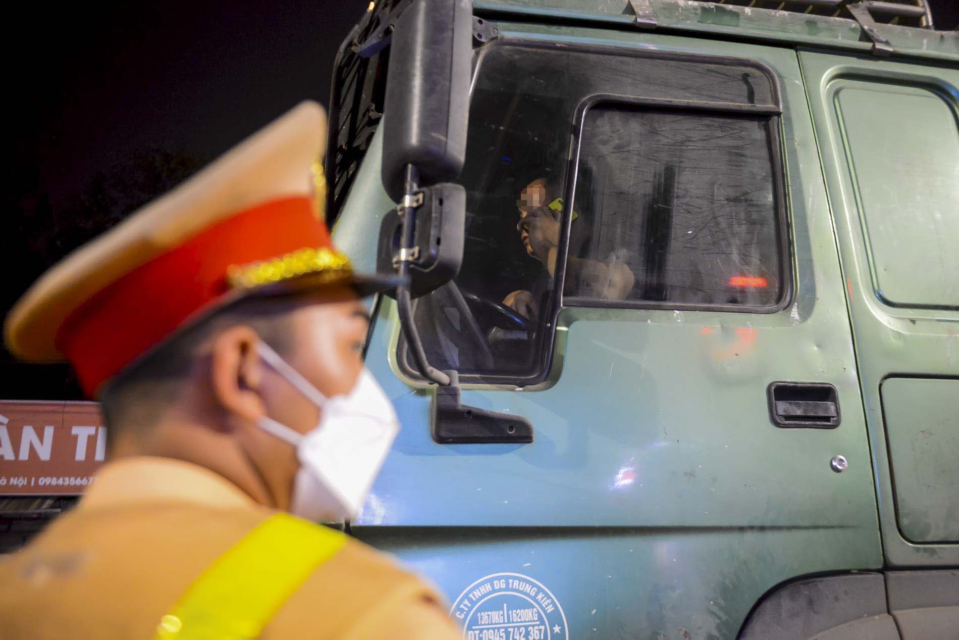 Chỉ ít phút triển khai đội hình, tại khu vực Km3 + 500 QL 5 (ngã tư KCN Sài Đồng B, Long Biên, Hà Nội), tổ công tác đã phát hiện một chiếc xe tải mang BKS 29H.728.xx đang chở vật liệu xây dựng lưu thông trên đường có dấu hiệu nghi vấn. Quá trình làm việc với tổ công tác, tài xế này không xuất trình được bằng lái, giấy tờ xe,… và liên tục gọi điện cho chủ xe đến giải quyết.