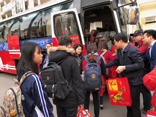 | Sinh viên Hà Nội được nhận quà và vé xe miễn phí về quê dịp Tết Nguyên đán Mậu Tuất - Ảnh: Khôi Nguyên |