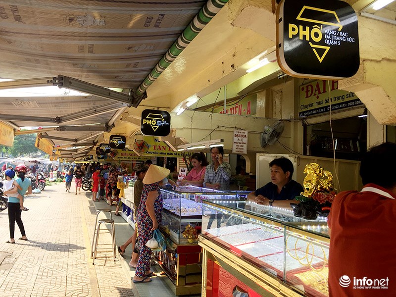 Nếu như ở Hà Nội, người dân đổ xô đến các cửa tiệm kinh doanh vàng bạc xếp hàng từ rạng sáng để chờ mua vàng thì ở Phố Vàng bạc tại TP.HCM, không khí mua bán khá trầm lắng.