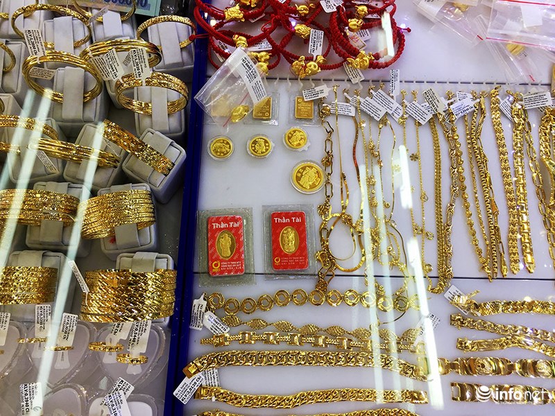 Trưng bày khá nhiều sản phẩm nhưng tiệm vàng này cũng không có khách mua.