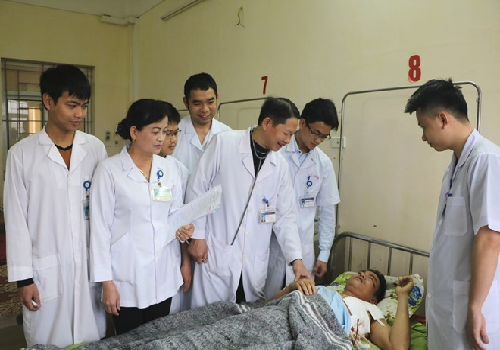 Các bác sĩ thăm hỏi và động viên bệnh nhân.