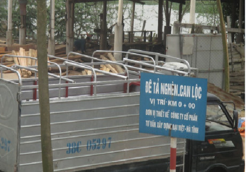 | Xe chở gỗ chắn ngang đê chống lũ Tả Nghèn |
