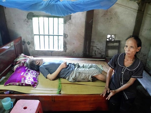 | Bà Thân Thị Hồng và người chồng bị tai biến nằm liệt giường |