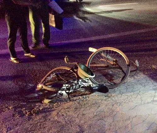| Xe đạp mà ông Duyệt điều khiển bị văng ra xa. |