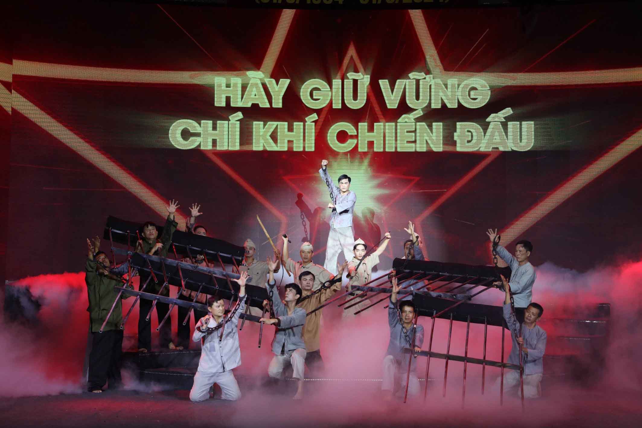 Tiếp đó, đại biểu tham dự được thưởng thức chương trình nghệ thuật đặc sắc có chủ đề “Hãy giữ vững chí khí chiến đấu” tái hiện những dấu mốc quan trọng trong suốt cuộc đời hy sinh, cống hiến của Tổng Bí thư Trần Phú.