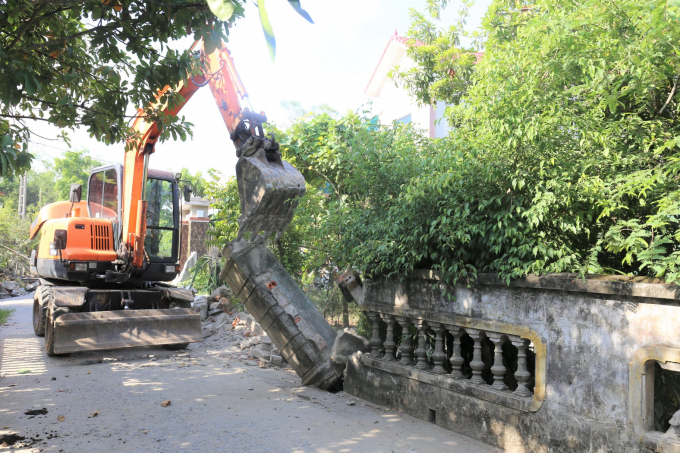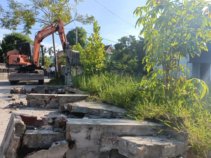 Nhiều hộ dân trên tuyến ở thôn Nam Giang, xã Thạch Long đã tháo dỡ các công trình kiên cố để hiến đất làm đường giao thông nông thôn