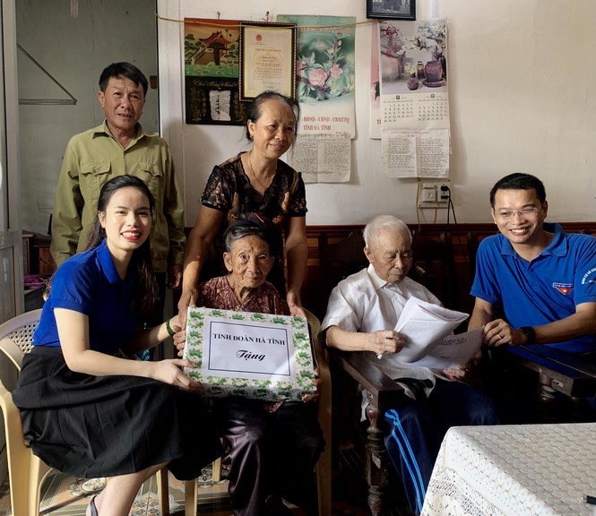 Đặc biệt, sau buổi lễ, BTV Tỉnh đoàn, Hội LHTN Việt Nam tỉnh Hà Tĩnh và các thành viên trong đoàn đã đi thăm hỏi và tặng 6 suất quà cho cán bộ lão thành cách mạng trên địa bàn huyện Can Lộc.