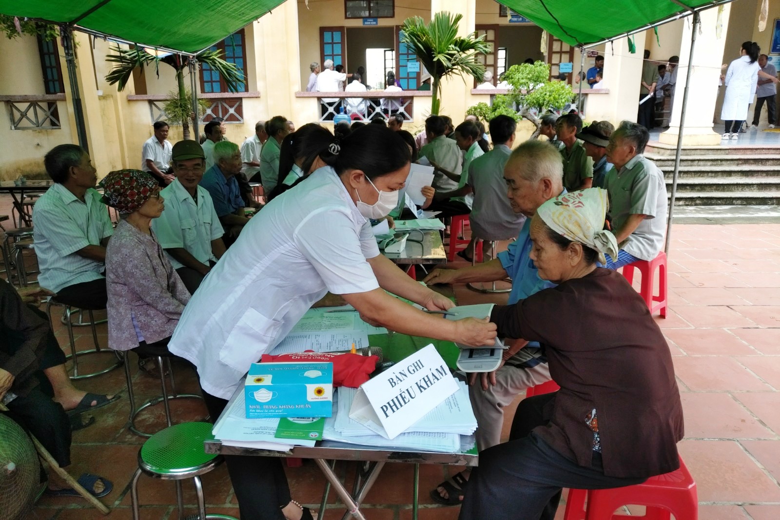Tại đây, các cụ được khám, tư vấn miễn phí về sức khỏe như chế độ dinh dưỡng, sinh hoạt, thể dục dưỡng sinh, cách uống thuốc và nhận biết dấu hiệu các bệnh thường gặp. Đồng thời, các cụ còn được khám, đo huyết áp, đo loãng xương, chụp XQuang, điện tim, siêu âm ổ bụng, xét nghiệm máu… để phát hiện các bệnh thông thường và hướng điều trị. Ngoài ra, mỗi cụ được tặng 1 phần quà gồm các loại thuốc tuần hoàn não, chống loãng xương, bổ gan.