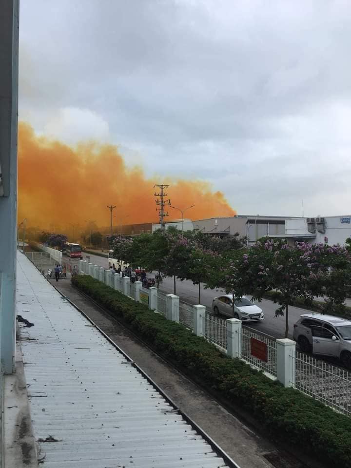 Đám khói vàng bất thường khiến công nhân và người dân rất lo lắng.
