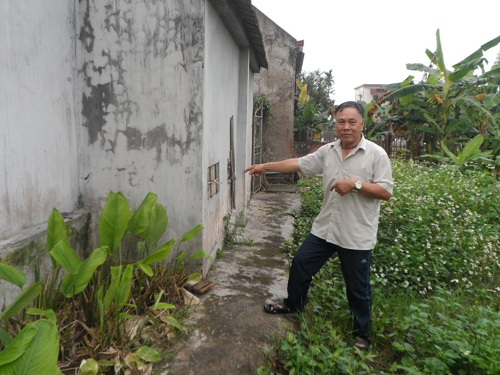 | Ông Vũ Trọng Bằng đang chỉ vị trí đường dong ngõ bị xây dựng lấn chiếm. |