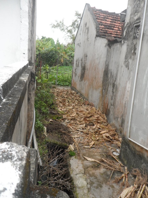 | Đường dong ngõ có hệ thống thoát nước đang bị bỏ hoang do bị rào chắn, biến thành đất tư. |