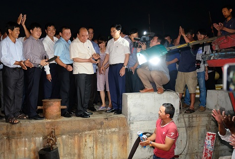 Trước đó, Thủ tướng đã đến thị trấn biển Thuận An, huyện Phú Vang, Thừa Thiên-Huế để thăm hỏi đời sống bà con và làm việc với lãnh đạo địa phương về tình hình khắc phục hậu quả sự cố môi trường biển xảy ra tháng 4/2016.