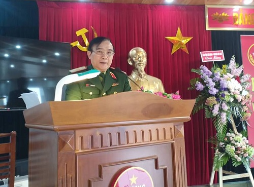 | Thiếu tướng Lê Mã Lương, AHLLVTND, Chủ tịch Hiệp hội doanh nghiệp của Thương binh và NKT Việt Nam phát biểu tại buổi lễ |