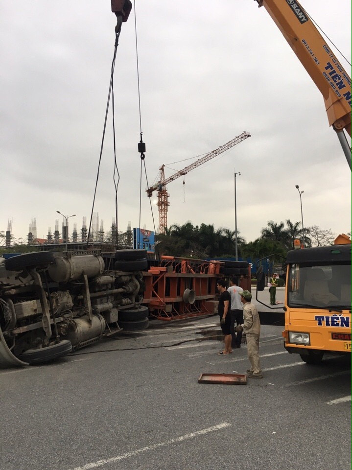 HOANHAP.VN - Khoảng 04 giờ ngày 28/4, lái xe Vũ Đình Mão (17/8/1987), sống tại Tiên Tiến - Tiên Lãng - Hải Phòng điều khiển xe container mang biển kiểm soát 15C-045.66 kéo theo sơmi rơ mooc biển kiểm soát 15R-011.74 theo hướng Đồ Sơn - Cầu Rào 2, đến vòng xuyến Cầu Rào 2, trước cửa khách sạn Pear River thì lật sang phải, đâm vào dải phân cách cứng.