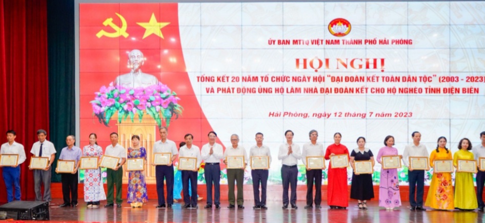 Tại hội nghị, 18 tập thể và 18 cá nhân được thành phố tặng bằng khen đã đạt thành tích xuất sắc trong phối hợp triển khai Ngày hội “Đại đoàn kết toàn dân tộc”; Ủy ban MTTQ Việt Nam thành phố tặng Bằng khen cho 30 tập thể và 22 cá nhân có thành tích xuất sắc trong phối hợp, triển khai, tổ chức Ngày hội “Đại đoàn kết toàn dân tộc” (giai đoạn 2003-2023).
