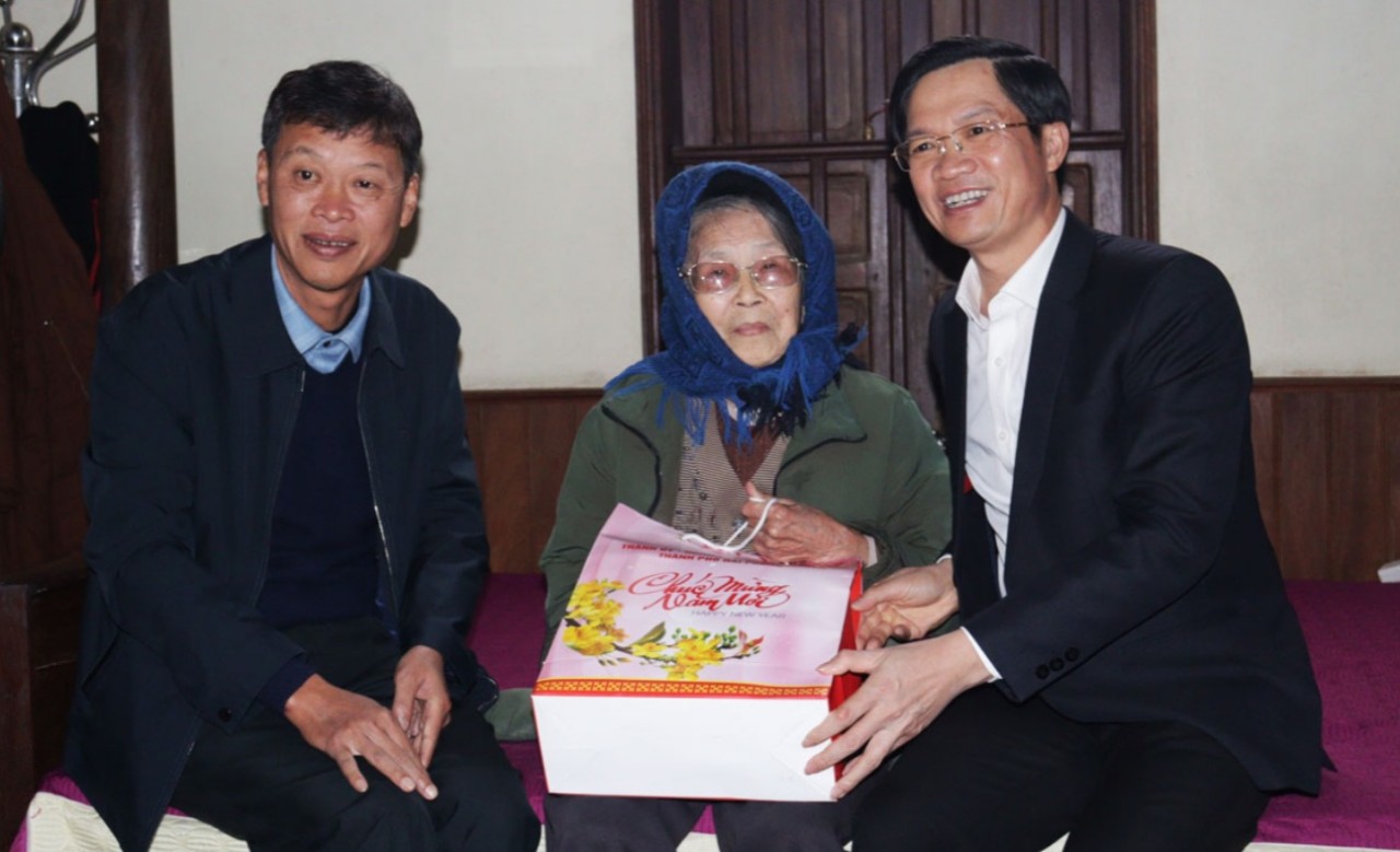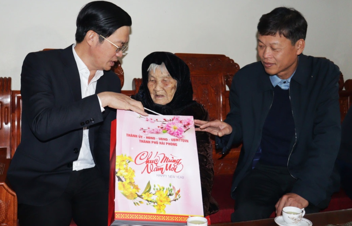 Tại huyện Thủy Nguyên, Chủ tịch HĐND TP đến thăm, tặng quà và trao Thiếp mừng thọ của Chủ tịch nước cho Mẹ VNAH Nguyễn Thị Thỏa, sinh năm 1924 (xã Minh Tân, huyện Thủy Nguyên); Chúc Tết các Mẹ VNAH Phạm Thị Hán, mẹ Nguyễn Thị Cong và mẹ Tô Thị Lý; Thăm, tặng quà, chúc Tết ông Đinh Văn Rỳ (thôn Lạch Sẽ, xã Lập Lễ), sinh năm 1948, là Anh hùng Lực lượng vũ trang nhân dân; Bà Đinh Thị Ngăn (thôn 1, xã Phả Lễ), sinh năm 1946, là vợ liệt sỹ Đinh Quang Đa; ông Bùi Văn Tấn, sinh năm 1959, là hộ nghèo (thôn 2, xã Hợp Thành).
