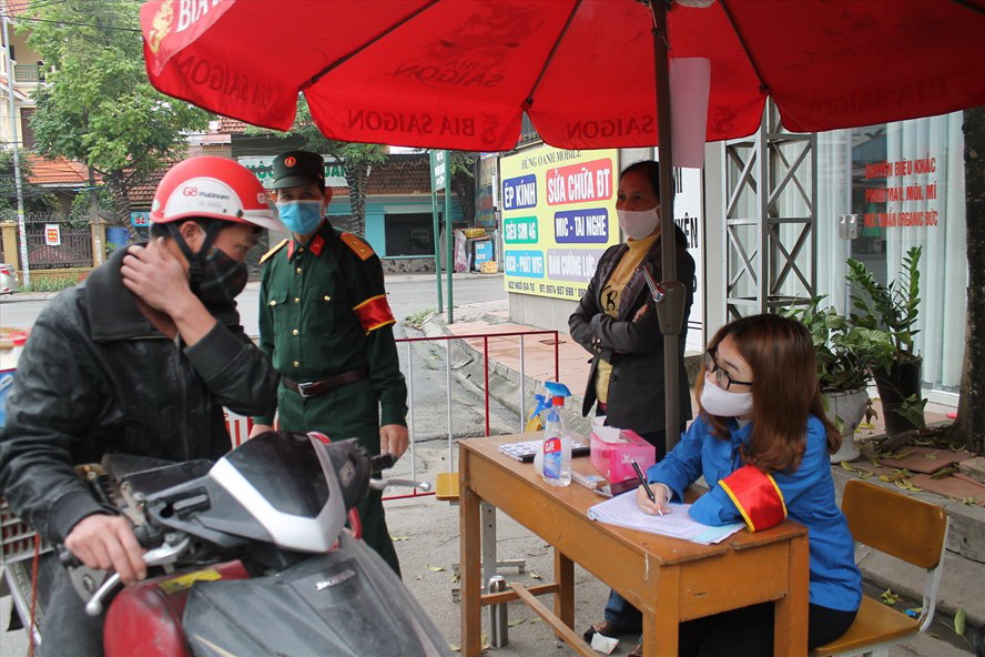 Phạm Thị Hồng Mai đang thực hiện công việc tại tổ kiểm soát dịch COVID-19 tại địa phương