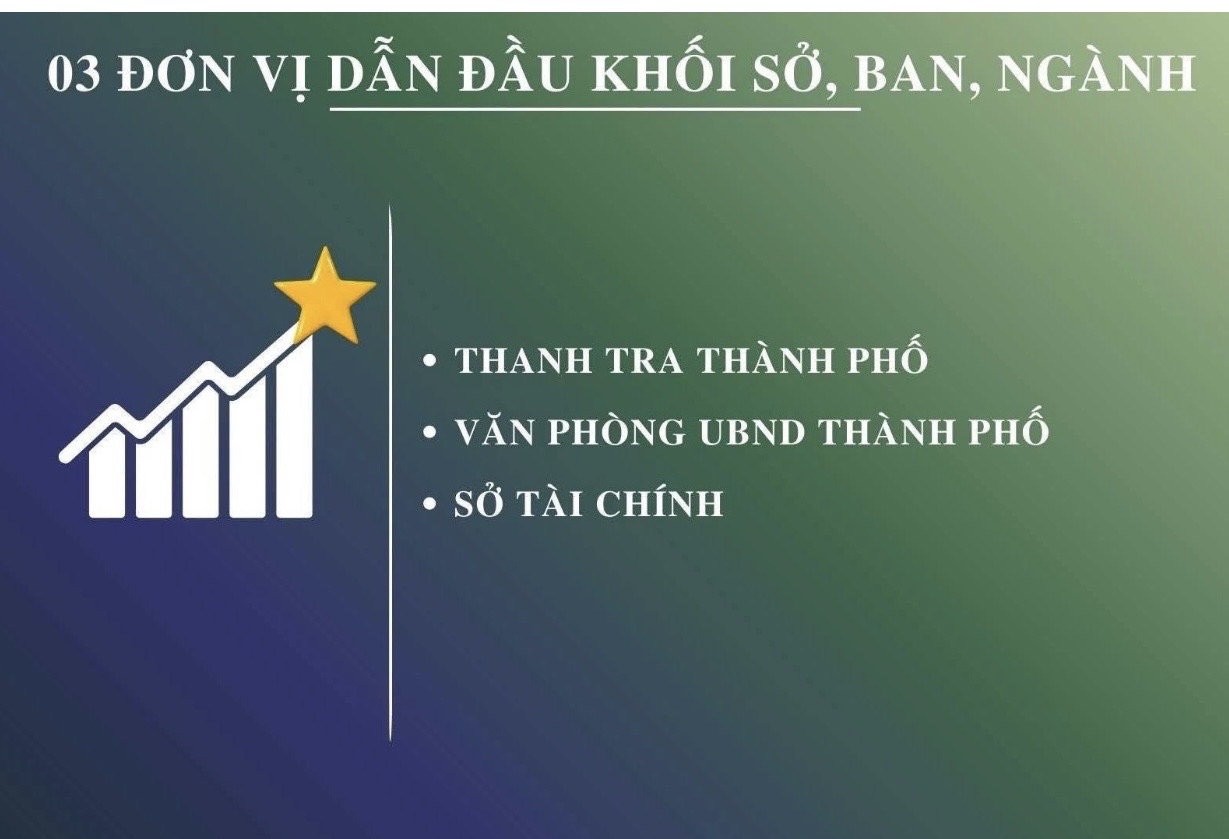 Theo kết quả công bố, khối sở, ban, ngành, Thanh tra thành phố xếp thứ nhất về Chỉ số CCHC với 94,71 điểm; Văn phòng UBND thành phố xếp thứ hai với 94,4 điểm; Sở Tài chính xếp thứ ba với 92,99 điểm; Sở Ngoại vụ xếp thứ tư với 92,9 điểm; Sở Nội vụ xếp thứ năm với 92,71 điểm.
