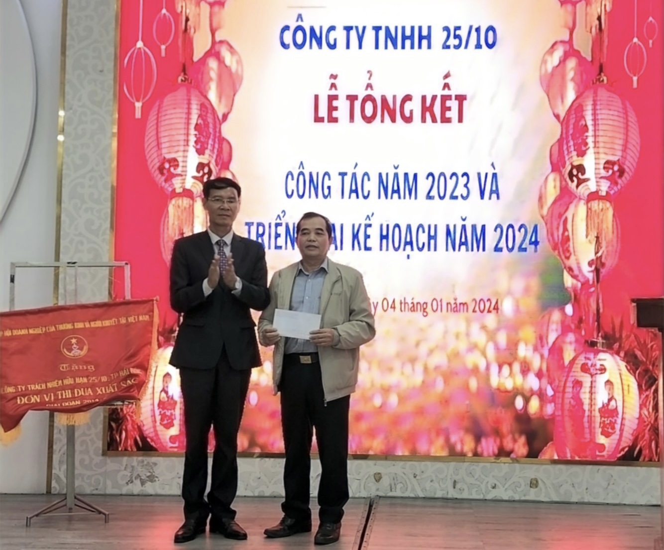 Giám đốc Công ty trao quà cho đại diện Hội Nạn nhân Da cam huyện Thủy Nguyên