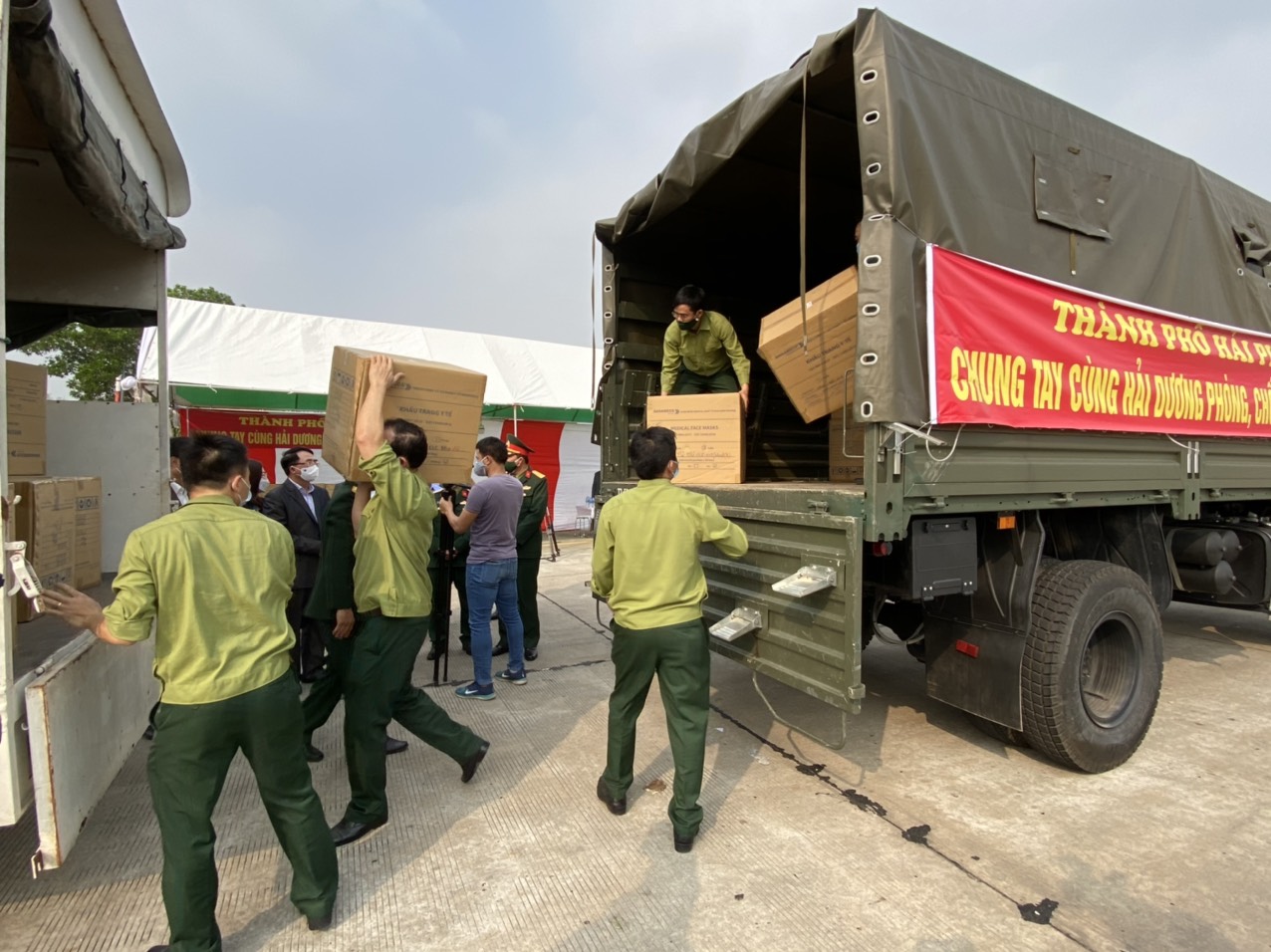 Đáp lại tình cảm của thành phố Hải Phòng, thay mặt Đảng bộ và Nhân dân tỉnh Hải Dương, đồng chí Phó Bí thư Tỉnh uỷ Hải Dương - Triệu Thế Hùng chân thành cảm ơn tình cảm và sự sẻ chia của Đảng bộ và Nhân dân thành phố Hải Phòng. Hải Dương sẽ nỗ lực, quyết tâm dập dịch COVID-19 trong thời gian sớm nhất để đưa kinh tế - xã hội của tỉnh và cuộc sống người dân trở lại trạng thái bình thường.