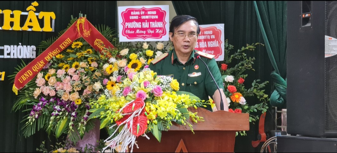 Thiếu tướng Lưu Xuân Cải chủ tịch Hội CCB thành phố Hải Phòng chia sẻ khó khăn của DN tại đại hội.
