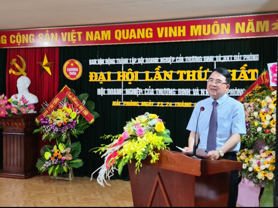Phát biểu khai mạc đại hội, đồng chí Nguyễn Thanh Đoàn cho biết, ngày 1/2/2021 UBND thành phố Hải Phòng đã ban hành Quyết định số 310/QĐ-UBND về việc cho phép thành lập Hội Doanh nghiệp của thương binh và người khuyết tật Hải Phòng. Đây là kết quả của quá trình hoạt động nghiêm túc, bền bỉ, với tinh thần trách nhiệm cao của ban vận động và các hội viên sáng lập thành lập Hội Doanh nghiệp của thương binh và người khuyết tật Hải Phòng. Trong quá trình đó, ban vận động luôn nhận được sự chỉ đạo sâu sát của UBND thành phố, sự hướng dẫn, hỗ trợ tích cực của Sở Lao động- Thương binh và Xã hội và sở nội vụ Hải Phòng. Sự động viên, tạo điều kiện giúp đỡ của Hiệp hội Doanh nghiệp của thương binh và người khuyết tật Việt Nam. Hội cựu chiến binh thành phố và sự giúp đỡ nhiệt tình, hiệu quả của các Sở, Ban, ngành, đoàn thể thành phố. Các cấp ủy, chính quyền đoàn thể các địa phương, tổ chức có liên quan.