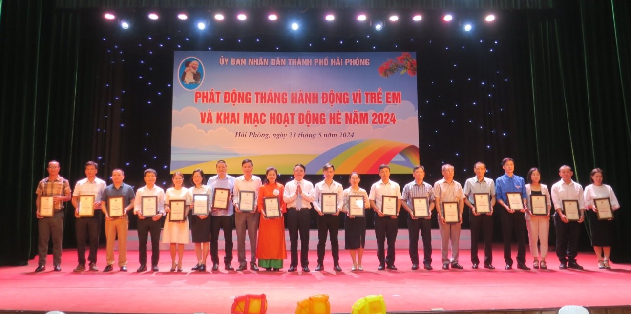 Nhân tháng hành động vì trẻ em và khai mạc hè 2024, TP.Hải Phòng chỉ đạo các cấp, ngành quan, tổ chức thăm hỏi, động viên và tặng quà cho trẻ em có hoàn cảnh đặc biệt; trẻ em thuộc gia đình người có công với cách mạng, trẻ em thuộc hộ nghèo, cận nghèo vượt khó, học giỏi; trẻ em mắc bệnh hiểm nghèo, bệnh phải điều trị dài ngày; trẻ em bị bạo lực, xâm hại; trẻ em đang sống tại các cơ sở bảo trợ xã hội... đặc biệt trong ngày Quốc tế thiếu nhi (1/6).