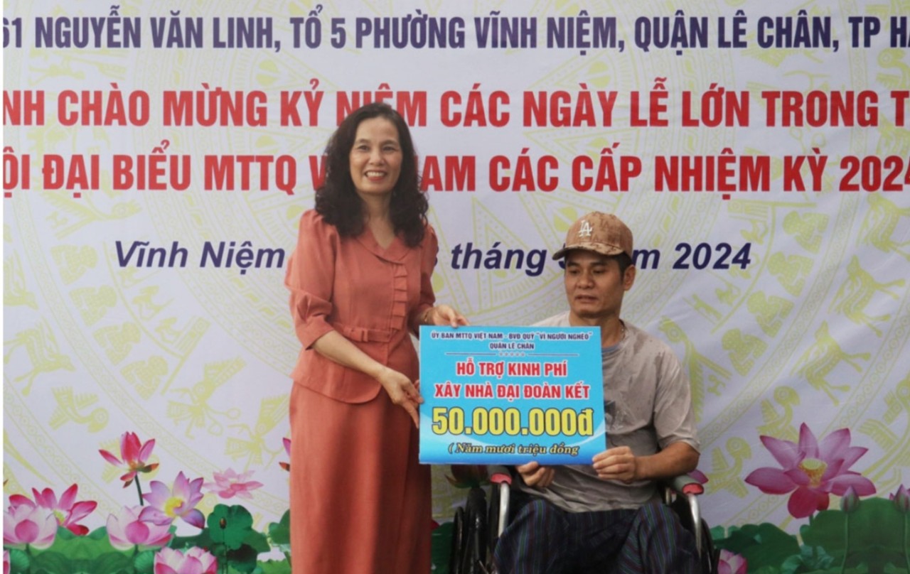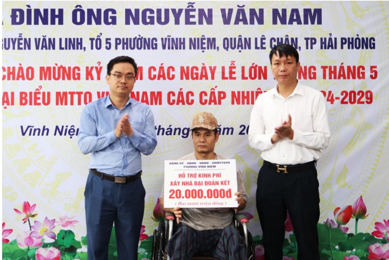 Các ban, ngành, đoàn thể quận Lê Chân và phường Vĩnh Niệm, cùng các đơn vị, nhà hảo tâm đã vận động, trao kinh phí hỗ trợ cho gia đình ông Nguyễn Văn Nam số tiền hơn 320 triệu đồng.