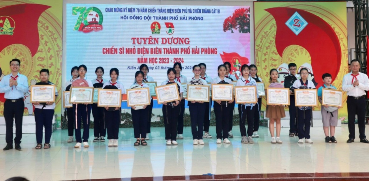 Tại chương trình, Hội đồng Đội thành phố biểu dương khen thưởng 70 em đội viên tiêu biểu, có thành tích xuất sắc trong phong trào rèn luyện, noi gương cha ông để trở thành “chiến sĩ nhỏ Điện Biên”. Các em chính là những chiến sĩ Điện Biên trong thời bình, là những bông hoa đẹp trong vườn hoa “nghìn việc tốt” của thành phố Hải Phòng.