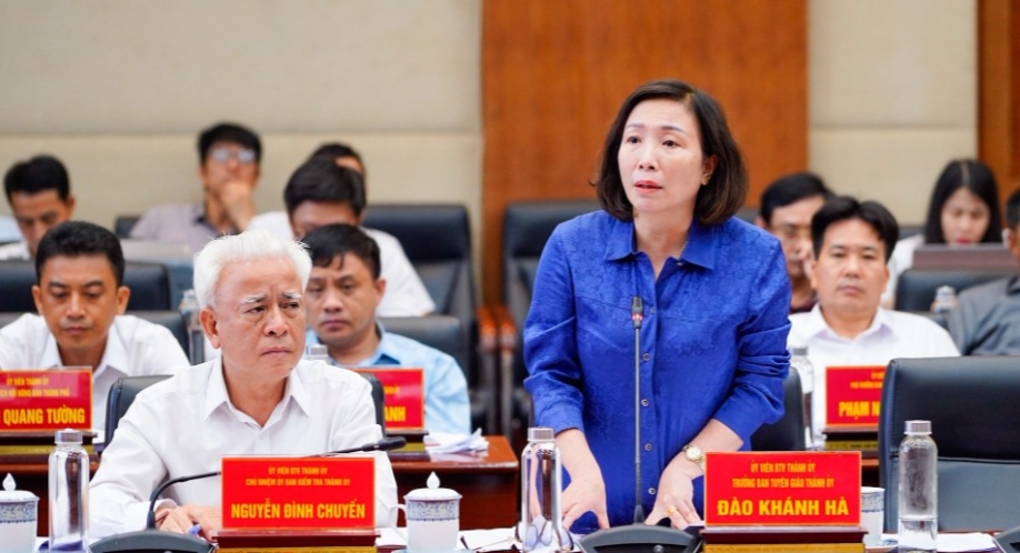Bà Đào Khánh Hà, Trưởng ban Tuyên giáo Thành ủy phát biểu