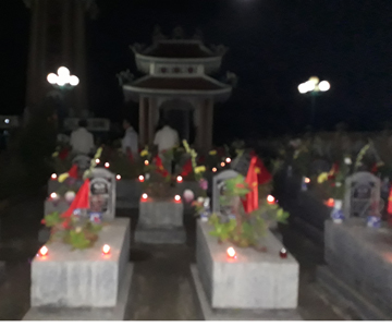Thắp nến tri ân các Anh hùng liệt sĩ diễn ra hàng năm đúng vào đêm 26 - 7 tại Nghĩa trang liệt sĩ xã Hải Thanh.