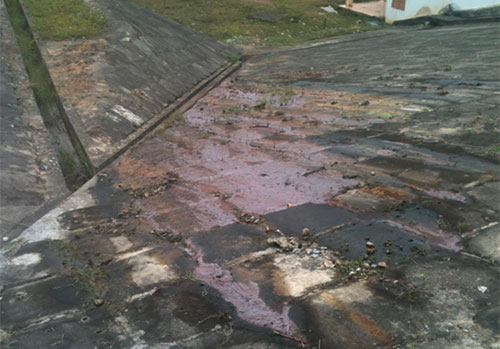 Đống đá tiêu thoát nước thân đập về nguyên lý phải thông thoáng để nước đi qua, nhưng thực tế bị tắc dẫn đến nước thấm dâng cao. Việc gia cố mái hạ lưu bằng tấm bê tông cốt thép vô hình chung đã bịt kín đường thoát của dòng thấm. Do đó nước ứ đọng dâng cao trong thân đập và thoát ra tại những vị trí xung yếu (khe hở) của tấm lát bê tông.