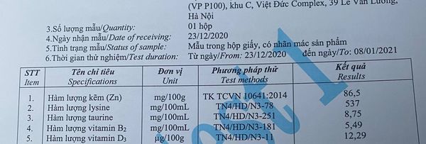 Để xác minh thông tin mà bạn đọc cung cấp chúng tôi đã mua một sản hộp sản phẩm TPBVSK Siro ăn ngon Ích nhi và mang đi kiểm nghiệm tại tổng cục đo lường chất lượng và cho kết quả như bạn đọc đã thông tin, hàm lượng trong Siro ăn ngon Ích nhi không hoàn toàn như công bố. Theo đó kết quả kiểm nghiệm ống 10ml được kết quả như sau :