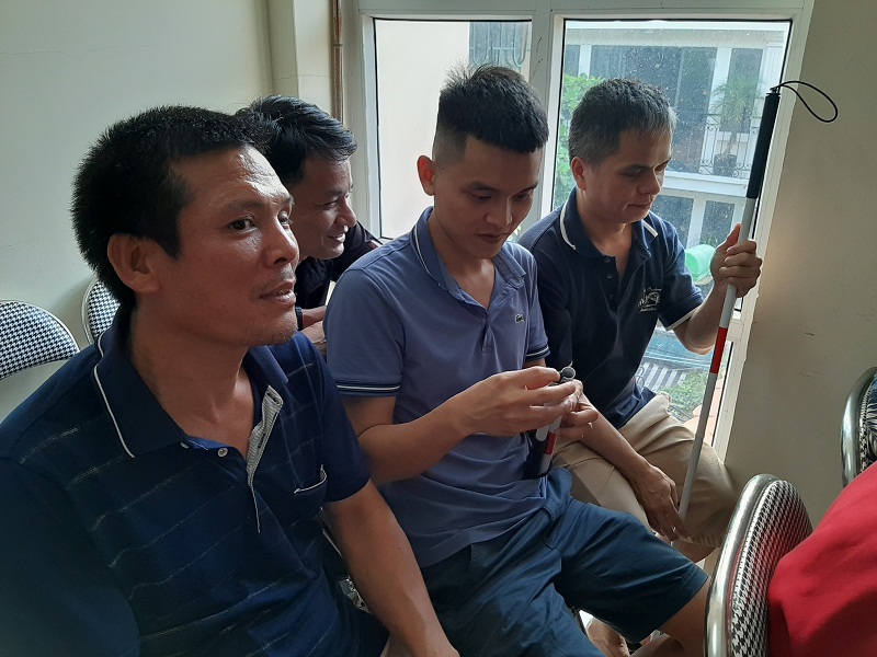 Người khiếm thị được tập huấn sử dụng cây gậy trắng