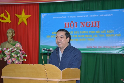 Phát biểu tại hội nghị, ông Đinh Xuân Sâm-PGĐ sở LĐ-TB&XH đã báo cáo công tác điều dưỡng của tỉnh Quảng Ngãi trong năm 2017, Trung tâm điều dưỡng người có công tỉnh Quảng Ngãi đã tổ chức thực hiện được 34 đợt điều dưỡng cho 14 huyện, thành phố với 2.007 lượt người có công đi điều dưỡng tập trung luân phiên đạt 91,22 % so với chỉ tiêu kế hoạch Sở giao (Trong đó: gửi 03 đợt với số lượng 233 người đi điều dưỡng tại Trung tâm Điều dưỡng luân phiên người có công tỉnh Quảng Bình (96 người), Trung tâm Điều dưỡng người có công tỉnh Lâm Đồng(100 người) và Trung tâm Điều dưỡng Miền trung Đà Nẵng 37 người). Ngoài ra còn tiếp nhận điều dưỡng cho 45 đối tượng người có công với cách mạng của tỉnh Quảng Bình.
