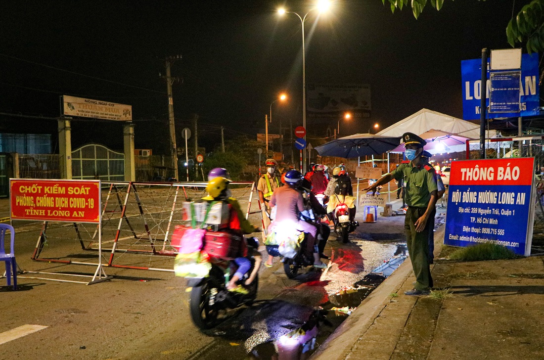 Lực lượng chức năng tại 2 chốt kiểm soát (TP.HCM và tỉnh Long An) đã tổ chức phân luồng giao thông, hỗ trợ người dân qua chốt, hạn chế tối đa tình trạng ùn ứ gây mất an toàn trong công tác phòng chống dịch. Riêng đối với người dân trở về tỉnh Long An được lực lượng chức năng tại chốt kiểm soát của tỉnh giữa lại khai báo y tế, sau khi cung cấp đầy đủ thông tin thì tiếp tục lưu thông.