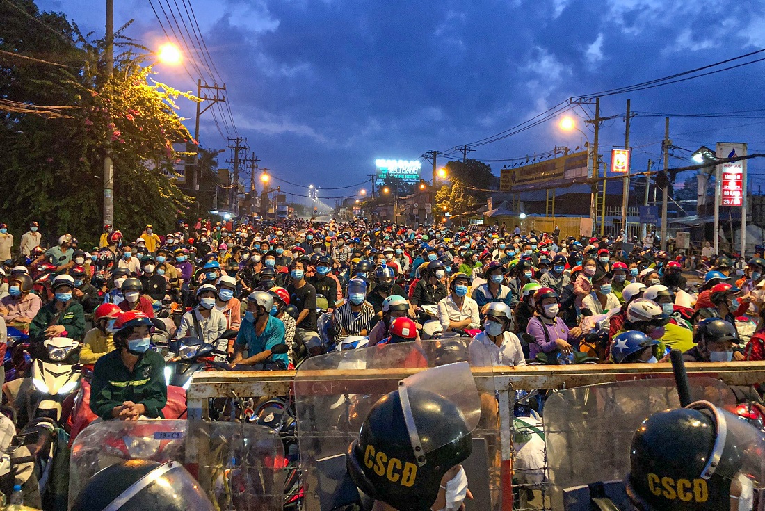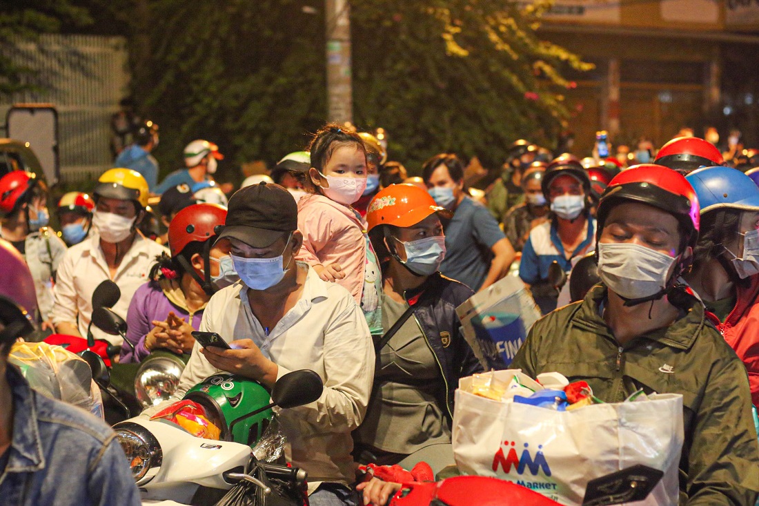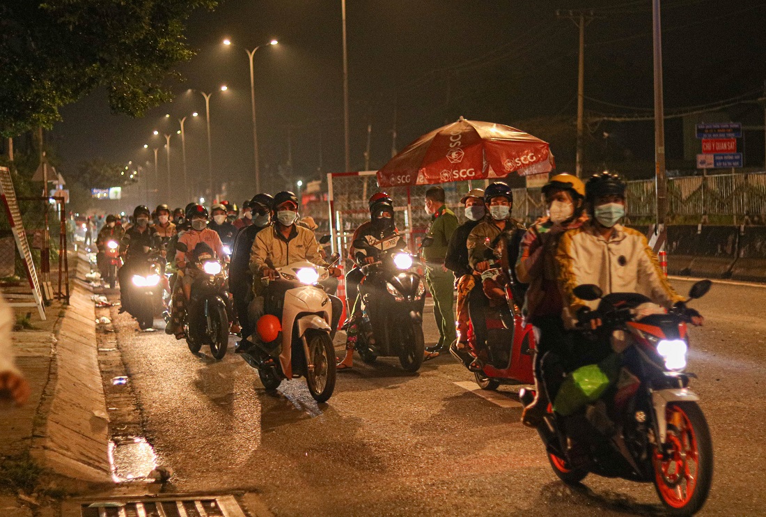 Trước đó, rạng sáng đêm 30/9, ngày 1 và 2/10, hàng nghìn người dân khắp các tỉnh thành khác nhau đã tràn lan đổ về các chốt kiểm soát của TP.HCM giáp ranh với các tỉnh để về quê. Đa số họ đều là người dân, người lao động phổ thông đã kiệt quệ vật chất lẫn tinh thần do ảnh hưởng của dịch bệnh trong nhiều tháng qua.