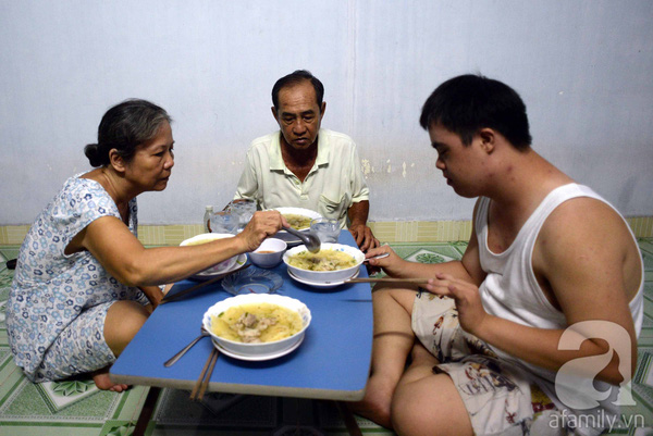 Cậu bé Mừng ngày ấy 7 tuổi mới chỉ biết lết, 9 tuổi bập bẹ nói và phải đến 12 tuổi mới đi những bước tập tễnh đầu tiên. Nhìn tương lai của con quá chông chênh, không ít lần vợ chồng suy sụp, tuyệt vọng. “Lúc 5 tuổi, Mừng vẫn còn yếu lắm, đặt đâu ngồi đó, đầu thì ngoẹo một bên, mỗi lần cầm muỗng cháo đút cho con mà nước mắt bà nuốt vào trong", bà Đặng Thị An (67 tuổi, mẹ Mừng) chia sẻ.