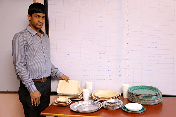 | Srikanth bên những sản phẩm thân thiện với môi trường do công ty anh sản xuất. |